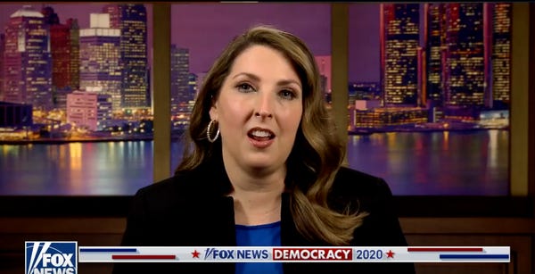 "So long as the CPD appears intent on stonewalling the meaningful reforms necessary to restore its credibility with the Republican Party as a fair and nonpartisan actor, the RNC will take every step to ensure that future Republican presidential nominees are given that opportunity elsewhere," RNC chairwoman Ronna McDaniel wrote in a letter Thursday to Frank Fahrenkopf and Kenneth Wollack, co-chairs of the debate commission.