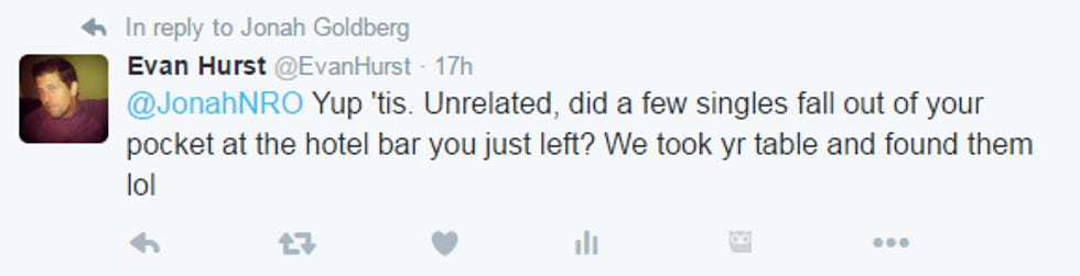 So we tweeted him, because maybe he needed those four dollars for something. Maybe NRO doesn't pay that great, YOU DON'T KNOW.