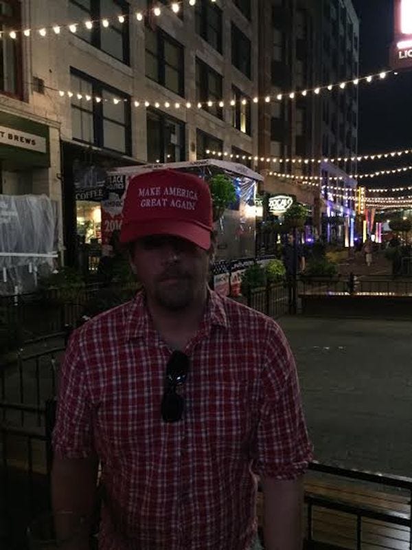 Afterward, we met some really nice guys who were wearing Make America Great Again hats, as a joke. They let me wear their Make America Great Again hat too, and we're pretty sure America is officially Great Again, on account of our hat-wearing.