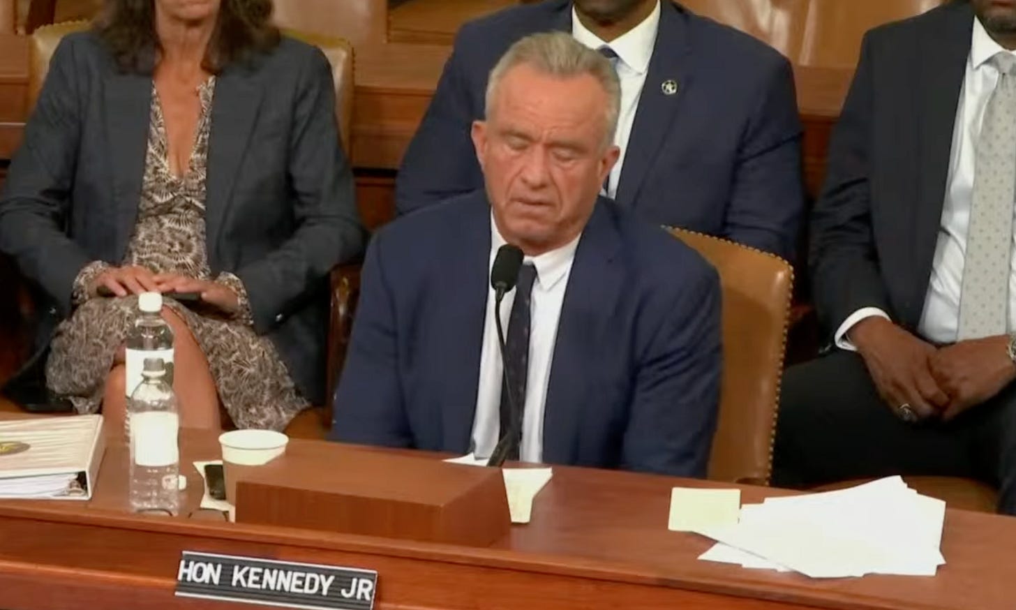 As if things have not been batshit enough as of late, we got to end the work week with not one, not two, but three RFK Jr. hearings — before the House Ways and Means Committee and the House Appropriations Committee on Thursday and before the House Education and Workforce Committee on Friday. This meant that I got to watch at least six hours of America’s least favorite gravelly voiced, raccoon-dick-cutting, anti-vaccine, never-nude conspiracy theorist be impossibly condescending to anyone trying to get a straight answer from him about anything.