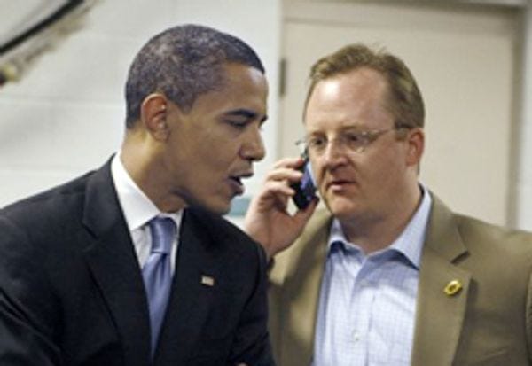 The pair's bond, rooted in Realpolitik and swaddled in masculine affect -- "Oh, my God, on the guy level it's unbelievable, I mean it's real guy stuff," says one female associate -- is especially manifest inside the White House, where Gibbs's portfolio extends far beyond the Brady briefing room.