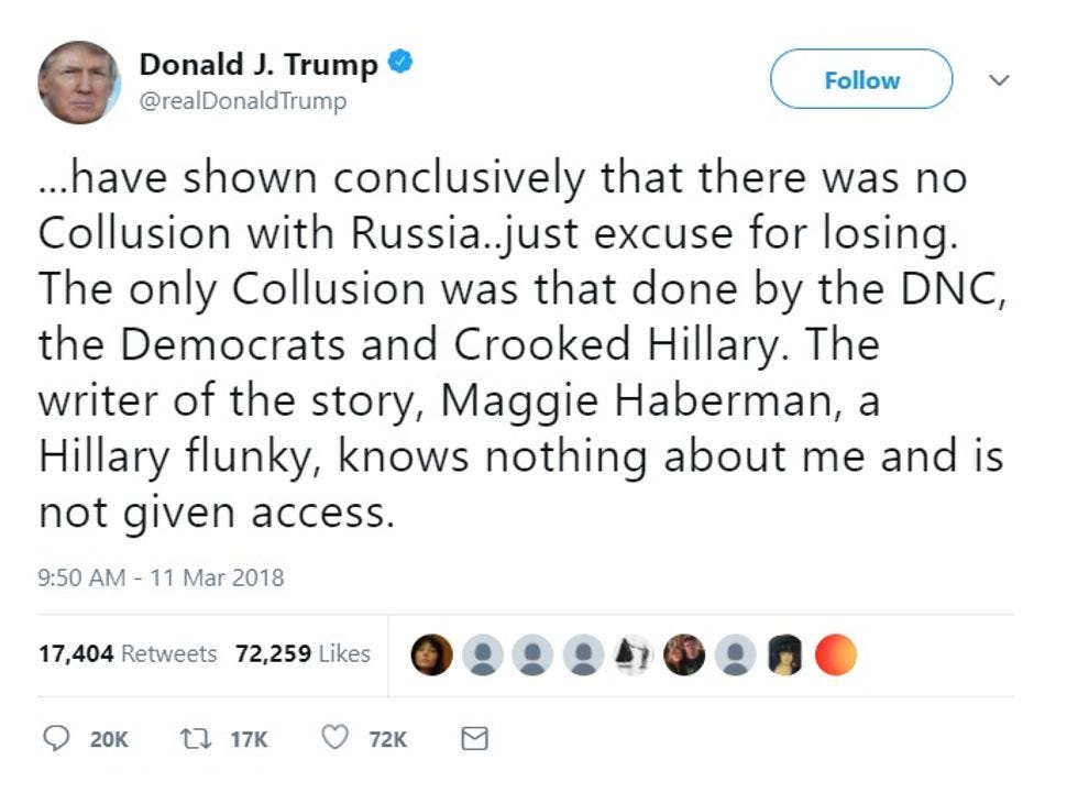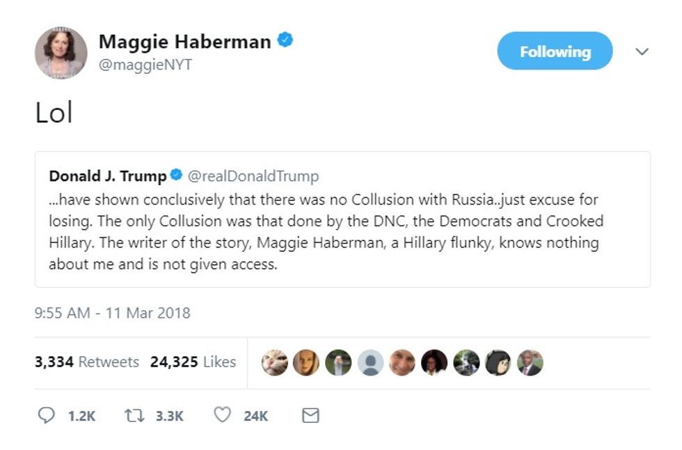 We give Maggie Haberman shit occasionally and only when she deserves it (most days), but we're gonna have to side with her on this one, because for all her journalistic faults, one thing she does have in the Trump White House is access . She's kinda bad about copying things Trump and his inner circle of dipshits say and reporting them as unvarnished truth, but she's definitely in the room, and by "room" we mean "Oval Office."
