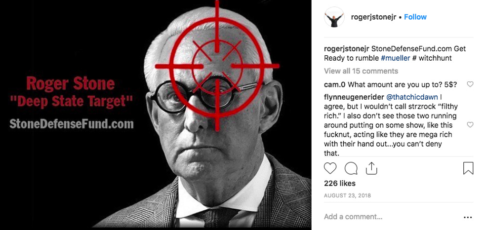 At Friday's court hearing in DC, Roger Stone apologized for posting a picture of Judge Amy Berman Jackson with a crosshairs next to her head, oh, sorry, "Celtic cross." You know, just like the one he posted to his own Instagram feed in August.