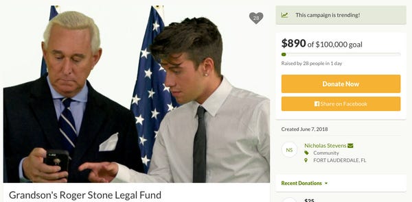 Roger Stone's Grandkid Wants YOU To Help Pay His Granddaddy's Legal Bills