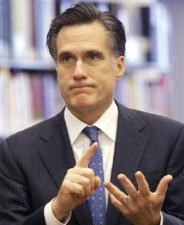 Faced with attacks from the left, right, leftish, righter and center forward, Mitt Romney has spent his days in South Carolina focusing on trying to make people forget about Bain by talking about it constantly. After Sarah Palin and the rest of the world called out Romney, or at least called on him to get more specific about the alleged 100,000 jobs his work at Bain created, Romney decided to say Thursday that there was "proof" of those jobs on the websites of the companies that he didn't bankrupt. But for the most part, the "100,000" is being dropped from the playbook. In fact, in a matter of six days, it looks like the Romney camphas gone from saying "over a hundred thousand jobs" to "tens of thousands of jobs" to rolls-off-the-tongue "thousands of jobs." Happy Friday to you.