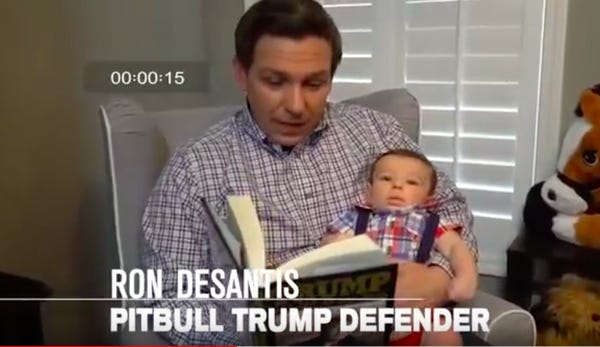 So, Arrington wants to defend Trump no matter what, and Kemp just wants to be as "politically incorrect" as Trump. It's all very romantic. But DeSantis's ad is truly something else. It's like pathetic married craven and they had children who hated themselves. (This is also how I'd pitch a rom-com about Donald Trump Jr. and Kimberly Guilfoyle.)