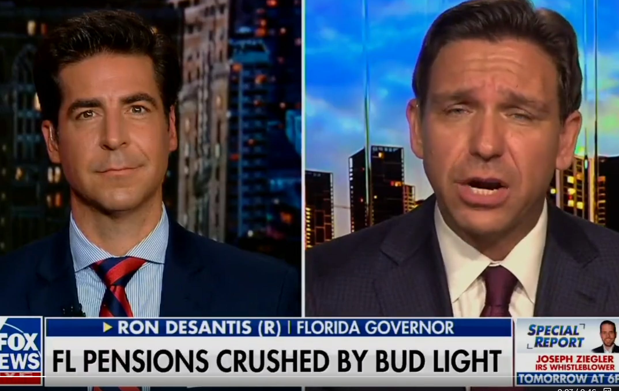 DeSantis’s excuse is that public pension funds in Florida might have had some of their investments in Anheuser-Busch stock, so the crash meant those pension funds lost money that hard-working retirees were counting on: