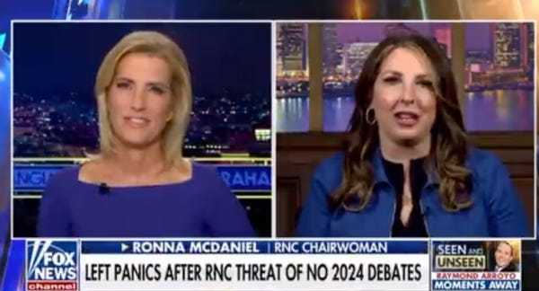 Monday night, McDaniel bellyached to professional terrible person Laura Ingraham that the Committee on Presidential Debates (CPD) was obviously biased toward Democrat Joe Biden in 2020. Her chief complaint was both appalling and absurd.