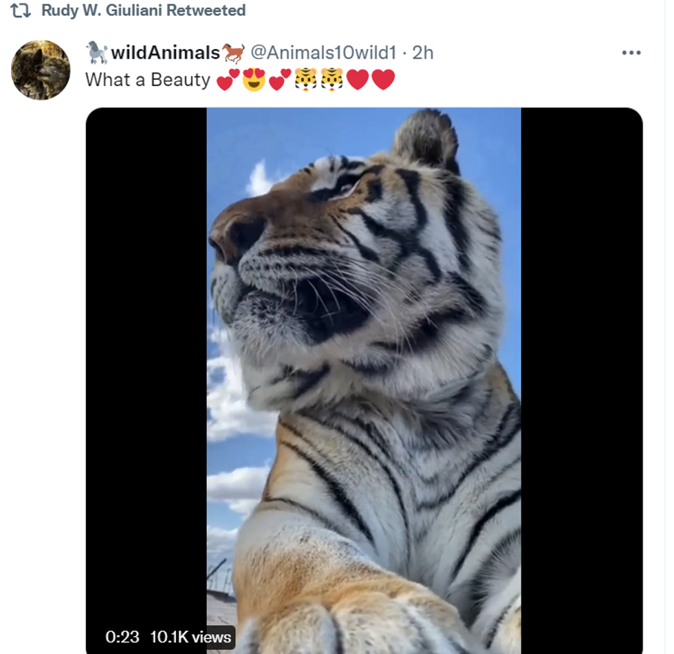 And he retweeted this video of a tiger. Probably completely unrelated:
