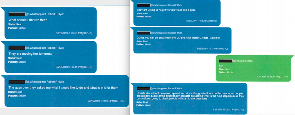 The next day he texted, "If you want her out, you need to make contact with security forces ... From Ukrainians."