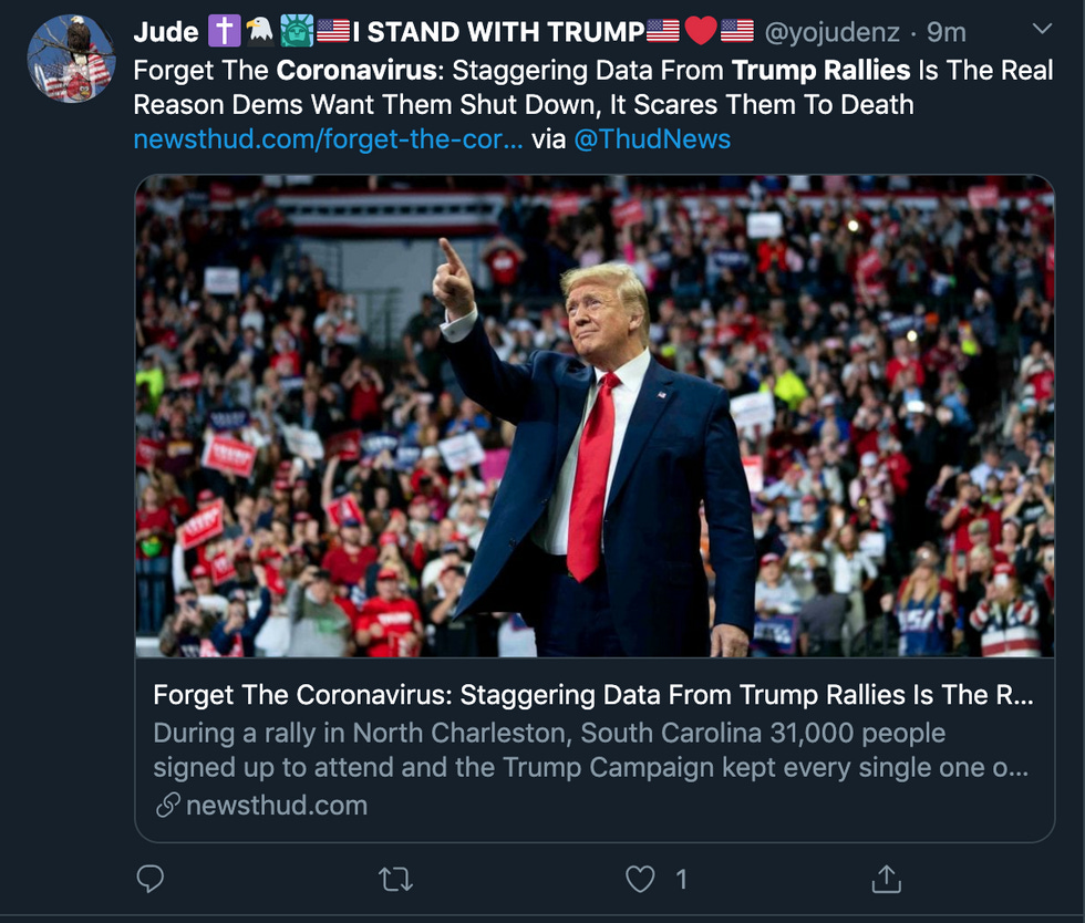 Personally, I would like to implore all of my fellow liberals to just stop encouraging Trump supporters not to go to rallies. Obviously, an enclosed space filled with hundreds of strangers is a perfectly safe place to be, just so long as they all agree to self-quarantine for a full two weeks afterwards. Oh wait, some people seem incapable of hand-washing, let alone sticking to a self-quarantine, so never mind, that won't work at all.