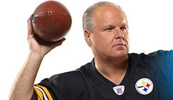 It's a veritable All-Pro lineup of atrocity, right? But let's face it. Your team of terrible is nothing without long-lasting human stain Rush Limbaugh lurching his way to the front and spewing something disgusting about the whole affair, because when you need really shitty thinking about women, you need Rush Limbaugh opening his gapingly stupid maw on his Tuesday radio show.
