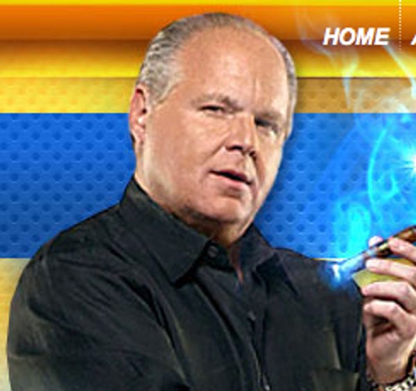 Taking umbrage at the words that fall from Rush Limbaugh's blubbery lips like so many wriggling maggots is a fool's game. He lives for us to take umbrage. (This is also why we hardly ever let you know about, say, Ann Coulter's latest bons mots about how black people all are murdery. That, and we frankly don't like what happens to our gentle commenters when we throw Coulter Meat at them.) But what is Rush Limbaugh on about now?