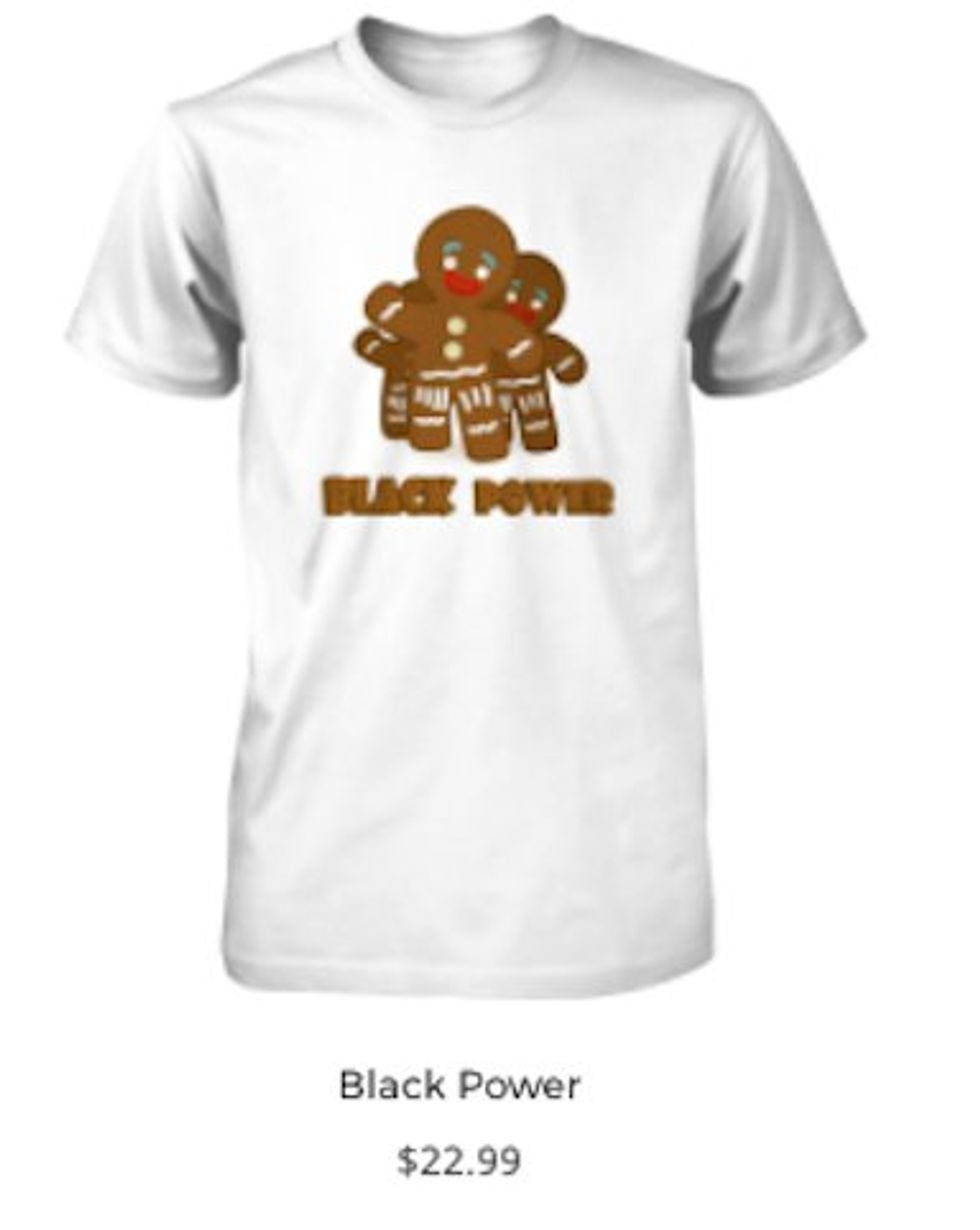 Another shirt that reads “Black Power” underneath an illustration of gingerbread cookies is still live at the custom address represent.com/black-power.