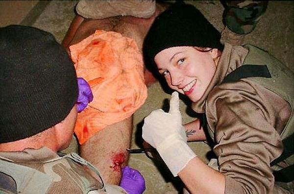 Leash-girl Lynndie England got most of the attention, but Sabrina Harman, the latest U.S. solier to go on trial for what happened at Abu Ghraib, was always our favorite. That radiant smile. The coquettish curl of her hair. In her hands, corpse-fondling seemed fresh and wholesome and a little daffy, great fodder for a Drew Barrymore Abu Ghraib rom-com,Never Been Sodomized with a Chemical Light Stick. But Harman, who popped up in the man-pile photo , allegedly wrote "rapeist" on one prisoner's leg, and is charged with five counts of maltreatment for threatening a prisoner with electrocution, wasn't actually having much fun at the Iraqi prison. Instead, she took snapshots to document the abuses that were transpiring there. "It bothered her and she started taking pictures to document what was going on," her attorney explained in a courtroom yesterday. And then, as if to underscore her shock over the terrible things she witnessed, Harman hopped up from behind the defense's table, smacked the prosecutor with a wet towel, stripped him, wrote "stupid loyer" on his naked torso, and started sobbing with laughter.— GREG BEATO