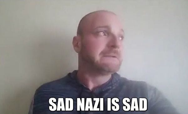 Now one would think, given that fucking Nazis are known for their ideological cohesion and consistency and also they are known to be quite reasonable (we know this because we read theNew York Times) that the fucking Nazi would just move to New Hampshire and start selling merch with Chris Cantwell! (I have a policy of not naming fucking Nazis in most cases but I think it important that people know that the name of the fucking Nazi who started crying like a particularly cowardly child after Charlottesville when he had warrants out for his arrest is Chris Cantwell.) We would expect, indeed, that the fucking Nazi would be self-sufficient enough that he would need nobody’s help at all!