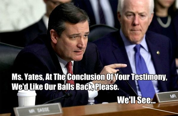 Sally Yates Knows What Is Unconstitutional And It Is Ted Cruz's Face!