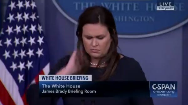 Sarah Huckabee Sanders did a White House press briefing for the first time in 42 days, everybody! It was so worthless, it's as if it never happened. And shockingly, it was full of exactly the type of debased motherfuckin' asshole lies we've come to expect from that debased motherfuckin' asshole.