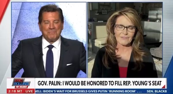 She’s baaaaaack! After the death of Rep. Don Young, Sarah Palin says she is ready to head to Congress to fill his “big shoes.”pic.twitter.com/2YQoNLAIGN