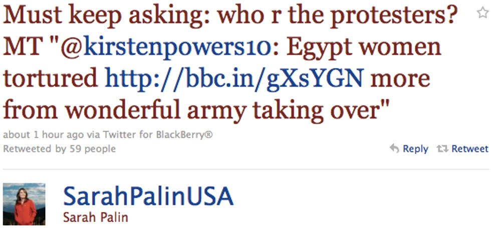 Sarah Palin Still Standing Behind Hosni Mubarak