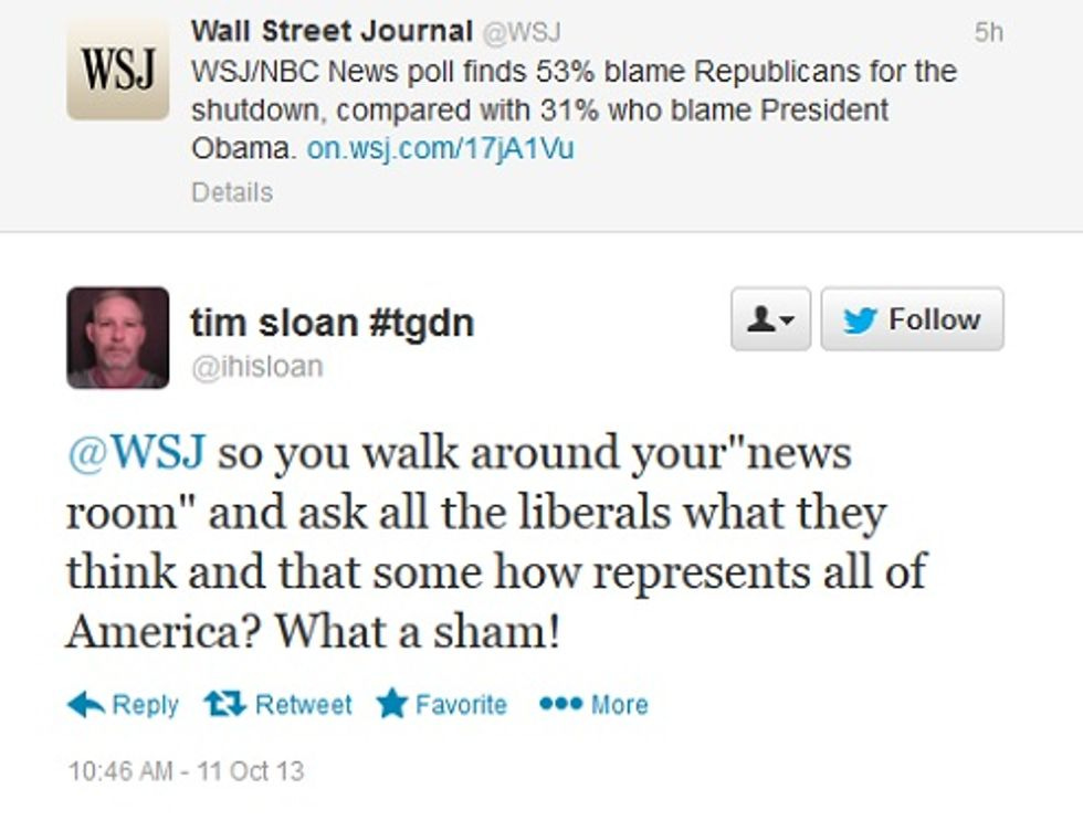 The angry teabagger, " tim sloan #tgdn," is, of course, a birther, following up with tweetsasking WaPo to look into "the Alabama Supreme Courts case on Obamas fraudulent documents hearing" and, after getting no reply, announcing