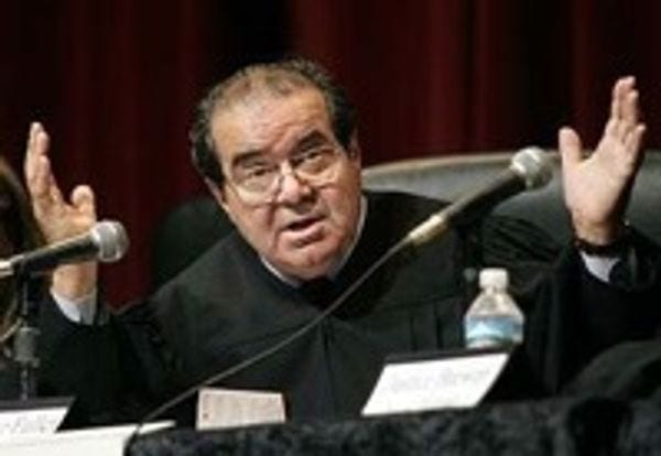Anyhow, Scalia said, "That's a nasty, impolite question," probably because he doing a SELF-PROMOTIONAL BOOK SIGNING at that very event. Later on he said that he didn't want "30-second takeouts" from court arguments to be used to characterize the full depth and breadth of a Supreme Court case. This just goes to show you how out of touch Justice Scalia is, as everybody knows they're called "sound bites" and rarely last for 30 whole seconds.