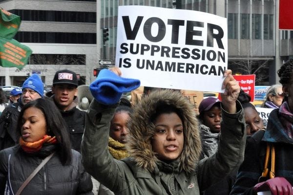 Workarounds involve some work, which is the whole point of voter-suppression laws, now isn't it? Fortunately, there are groups to help people get that work done and jump through the hoops. And homeless people can register with the address where they sleep. But that doesn't at all erase the fact that Republicans just plain like making voting harder, in the name of combating the phantom plague of "voter fraud," which is already illegal.