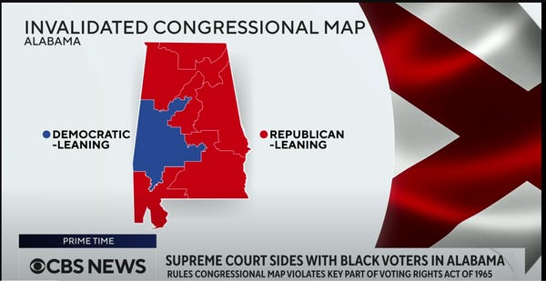 The Supreme Court surprised us all last week when Chief Justice John Roberts and Justice Brett Kavanaugh (the one who enjoys beach weeks and beer) joined the three non-corrupt justices and upheld what remained of the Voting Rights Act. Let's not break ground on their memorials just yet, though. Back in February 2022, the Court issued an unsigned five to four order staying two federal district court rulings that instructed Alabama to redraw its racist Jim Crow-gerrymandered map.