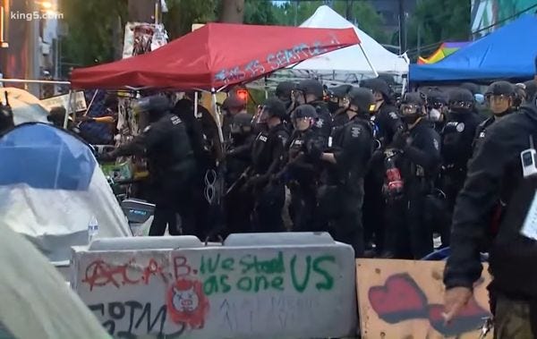 Police also cleared out people who had been camping at Cal Anderson Park, including as many as 50 people who had been homeless before the protests, according to one of the protesters, who