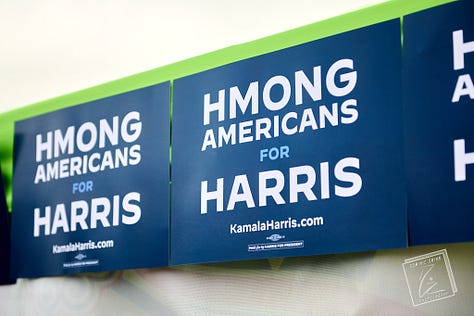 So it makes sense to see Evers, Baldwin and Lt. Gov. Sara Rodriguez saluting and shaking hands with Hmong veterans who have yet to be federally recognized for their service. Emhoff sharing a toast of sparkling grape juice at 10 in the morning with Mr. and Mrs. Hmong National isn't just a great photo op (if you can get it), it's a powerful gesture of goodwill that will echo through a group of voters vulnerable to the anti-immigrant policies laid out by Donald Trump and Project 2025.