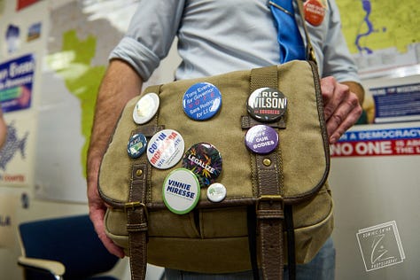 Wisconsin Democrats have seen a surge in donations and volunteers since Harris's announcement, Wikler recently told Ezra Klein. Letting those volunteers get some face-to-face time with surrogates boosts morale. It might not seem important until you've been pounding the pavement and banging on doors with nothing but a clipboard and an empty bottle of water in the dead heat of summer. That's when a few humbling words and a joke can be the difference between calling it quits for the day, and pushing on to the next street.