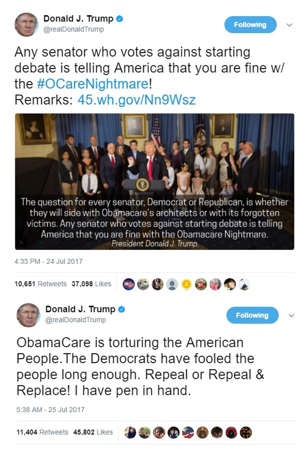 What's he for? Winning! He needs to win! Definitely needs to win. The Senate could vote to have all medical services provided by trained macaques, and Trump would enthusiastically hail the establishment of the Monkey Doctor Corps.