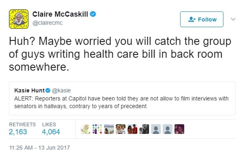 Well, nothing to worry about here, probably. The Republicans in the Senate briefly restricted press access on the Senate side of the U.S. Capitol with no good reason, then just as quickly backed off the idea after the backlash they certainly couldn't have seen coming. Can't imagine why they might have put that rule change in place at a moment when Republican senators are working on their completely secret Obamacare repeal, which they intend to cram through with no hearings or amendments. For a few brief shining hours of what looked like a flirtation with autocracy, here were the New Rules:
