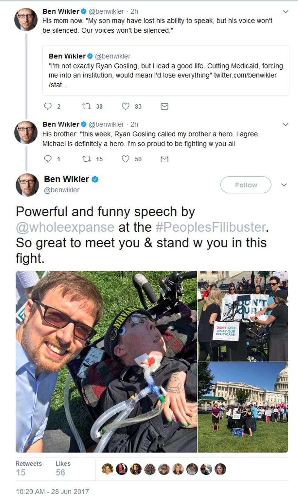 But it wasn't only a nice time, as Wikler goes on to explain; the encouraging thing is that people were showing up, engaged and ready to fight to protect the ACA. The smart money is on the bastards with the money, but if enough people make enough of a ruckus, the good guys just might win, and tens of millions of people will keep their healthcare, which, as a wise man once said, is a big fucking deal.