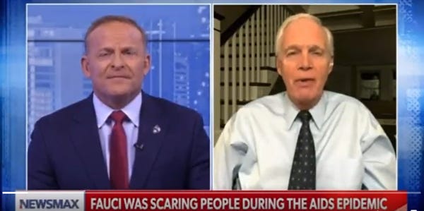 We can't be for certain, but we reckon Wisconsin's GOP Senator Ron Johnson might have been feeling some of his stupids yesterday on Newsmax with that weenus host Grant Stinchfield, saying out loud and emphatically that "I have NEVER downplayed the tragedy of both AIDS and COVID."