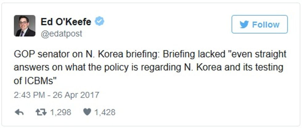 Tennessee Republican Bob Corker was clearly thrilled: Asked if he'd learned anything new about North Korea and the administration's policy, he said "I didn't, really," then adding "It was an OK briefing." When pressed, repeating, "It was OK." Another Republican who wasn't quite willing to go on the record waseven less whelmed: