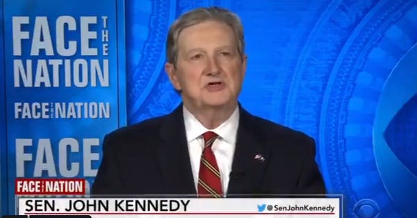 Senator John Neely Kennedy, the thing what went to Oxford but who seems to want you to think he was raised by a brusque yet kind redneck alligator in the Louisiana bayou, went on the Sunday TV shows yesterday. And he said ...