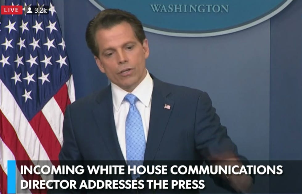 Anthony Scaramucci, head communicator in charge of being the very best lickspittlethe Trump White House could buy. Anthony Scaramucci, who loves you and you and you and you and especially Reince Priebus, his "brother," whose job he is trying to take. Anthony Scaramucci, who "transparently" deleted all his tweets about being a big ol' homo-lovin' Muslin-lovin' gun- and wall-hatin' libtard who believes in climate change and that Donald Trump is a stupid idiot.