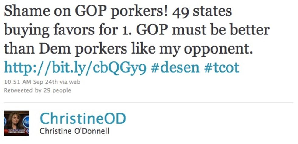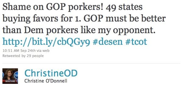 Sex Maniac Christine O'Donnell Groans About 'Porkers,' On Twitter