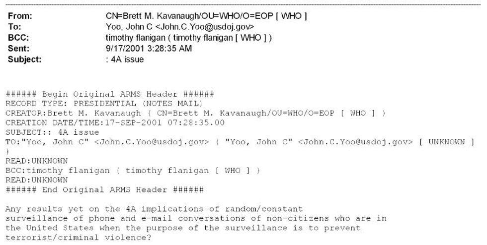Apparently Kavanaugh had a lot more to do with okaying torture and warrantless wiretapping than he admitted.