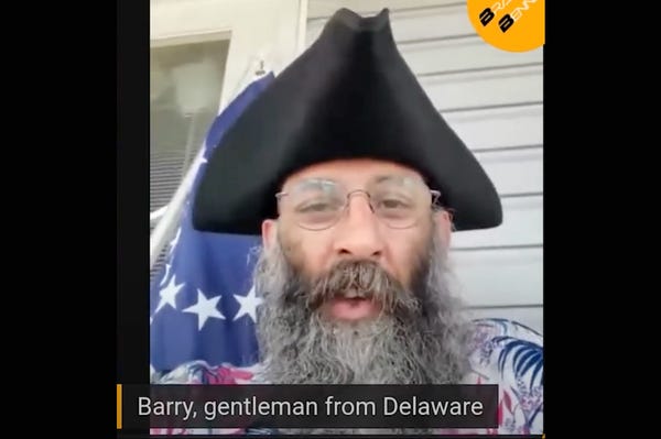 You think they'd also want that picture of him, above, in the tricorn hat repressed, but that image, and the video interview in which he wore it, remain online for the world to see. But we should probably show you the Boogaloo flag, since we're here.