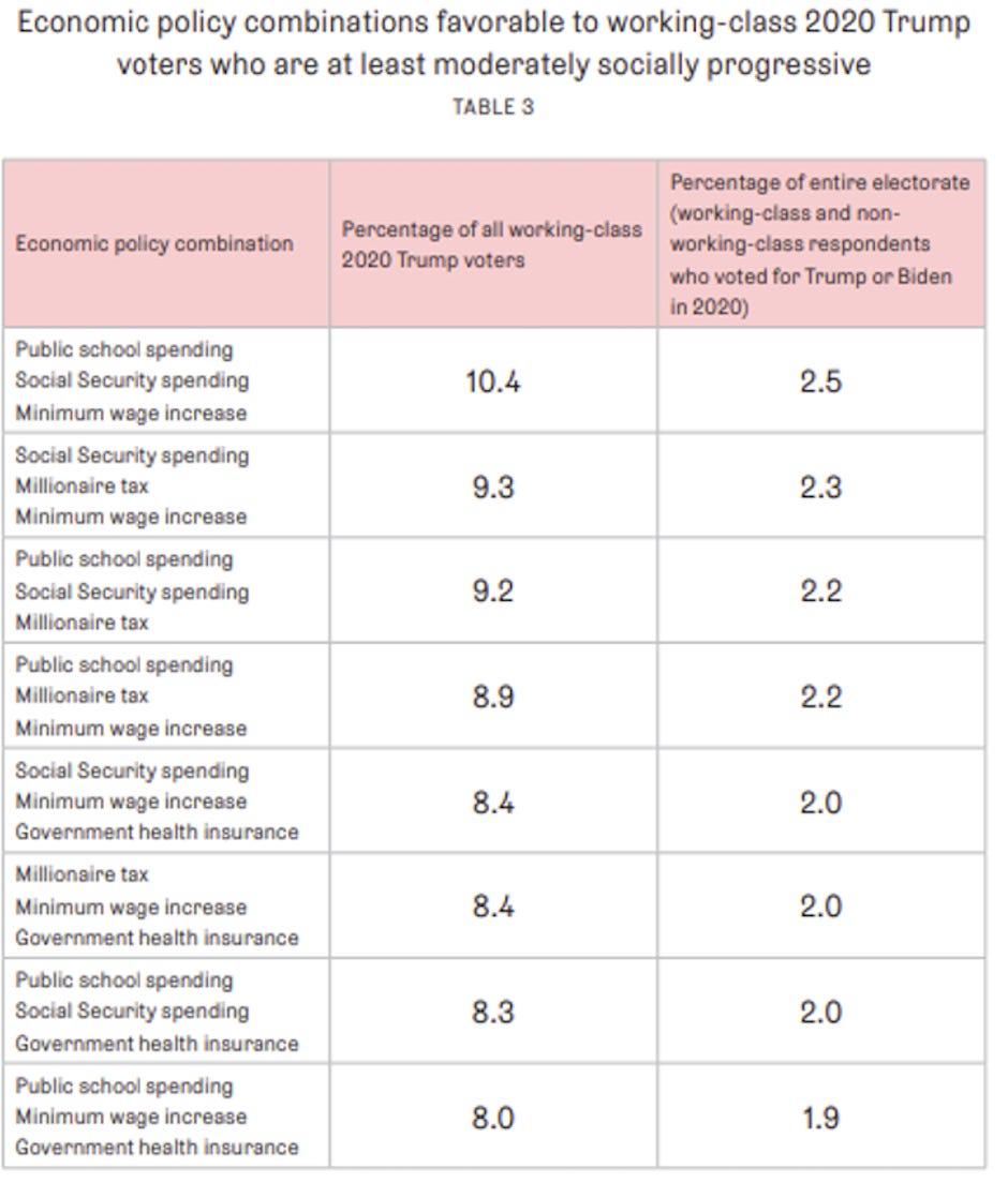 The study found that 10 percent of Trump voters were economically progressive and socially moderate, suggesting that they may be quite winnable.