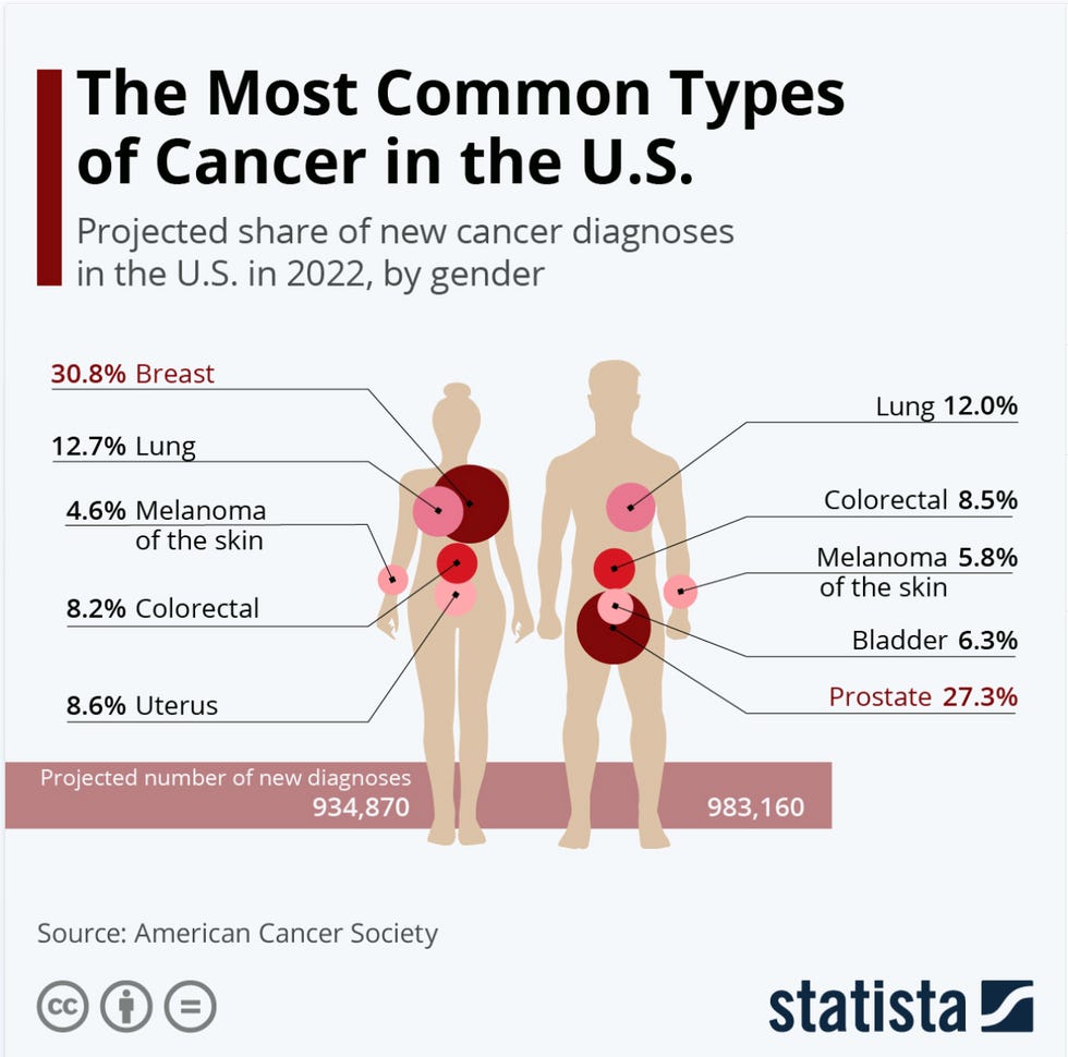McArdle's big argument here is that piles of money go to breast cancer charities, more than other charities, because people identify breasts with women, even though other cancers kill more people each year. That would be a great argument if there were not also many other forms of cancer exclusive or almost exclusive to women and those assigned female at birth, and if breast cancer were not also the most common form of cancer in the United States.