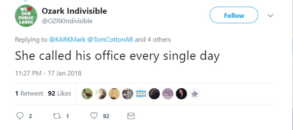 Ozark Indivisible, which is a very persistent and organized and polite protest group, reports that others have gotten these letters too. We are sure they are equally threatening consituents who made Tom Cotton pee his britches just as much as Nana did up there.