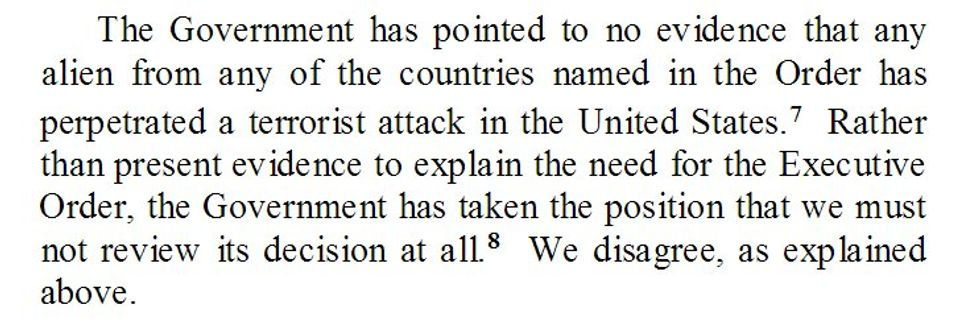 All three judges on the panel -- one appointed by Obama, one by Dubya Bush and one by Jimmy Carter -- agreed on just how much the Trump administration needs to go fuck itself right now. Weird how even Republican-appointed judges understand things like "Constitution" and "the law." It's like they went to a special school Trump didn't go to or something! Also weird how President Bannon and Donald Trump don't automatically get what they want, just because Bannon writes an executive order and Trump scrawls his name on it in poo. Checks and balances! Get some!
