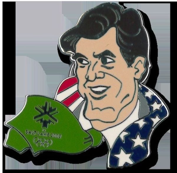 Oh Mittens. So unlikeable, so tone deaf, but he was right to be pretty proud of what he did with an Olympics where he came into the middle of a situation marred by bribery and overspending, and one that was also too the first Olympics post 9/11 so the dread threat of terror hung around that thing like a shroud. But Mitt managed to convince corporate America to throw coin at the thing, which is likely why we didn't have toilets with no drains and hotels with no ceilings for the 2002 Olympics.