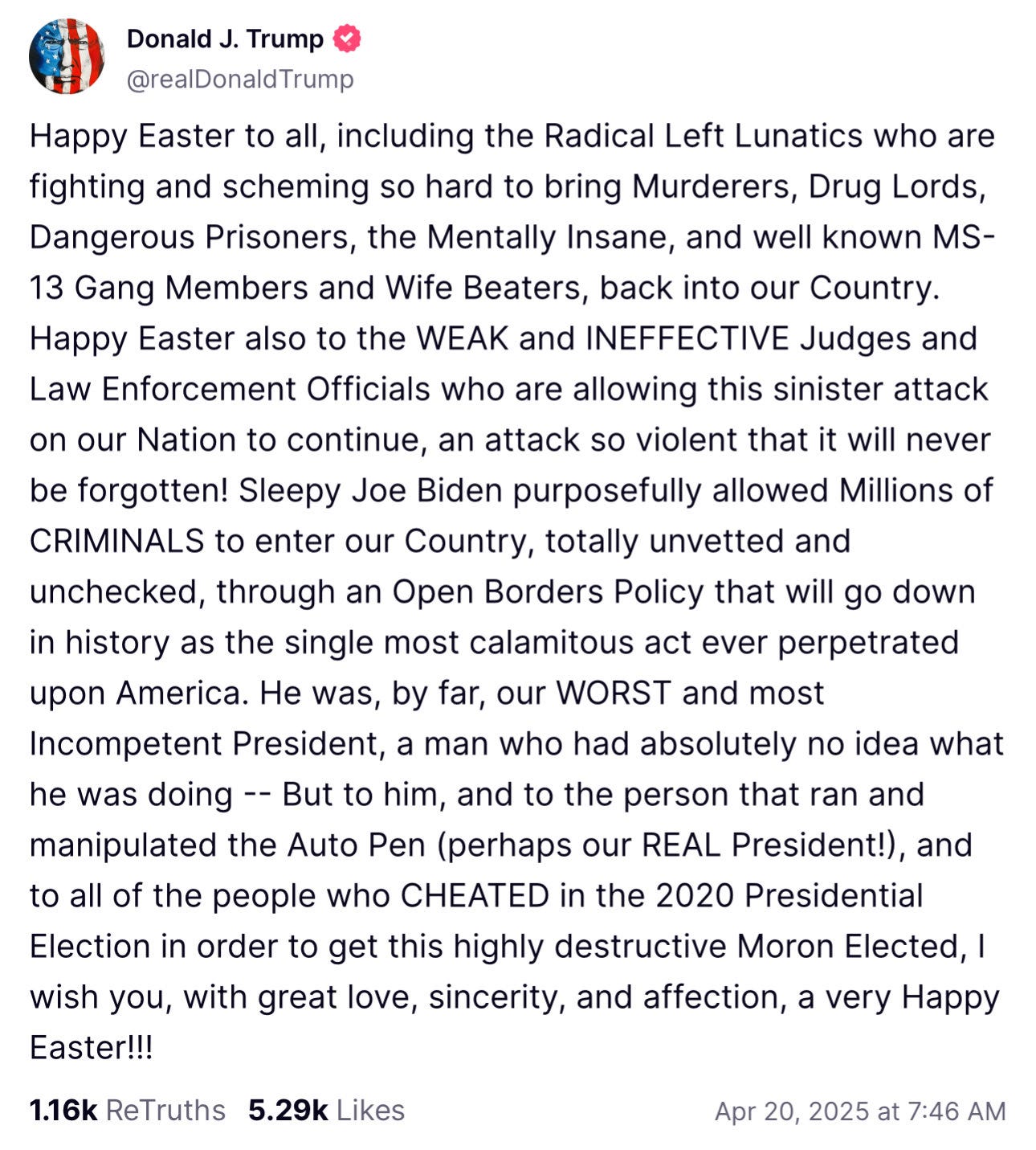 While Donald Trump was sending out an Easter message that showed off the rotting, dark void where his soul should be: