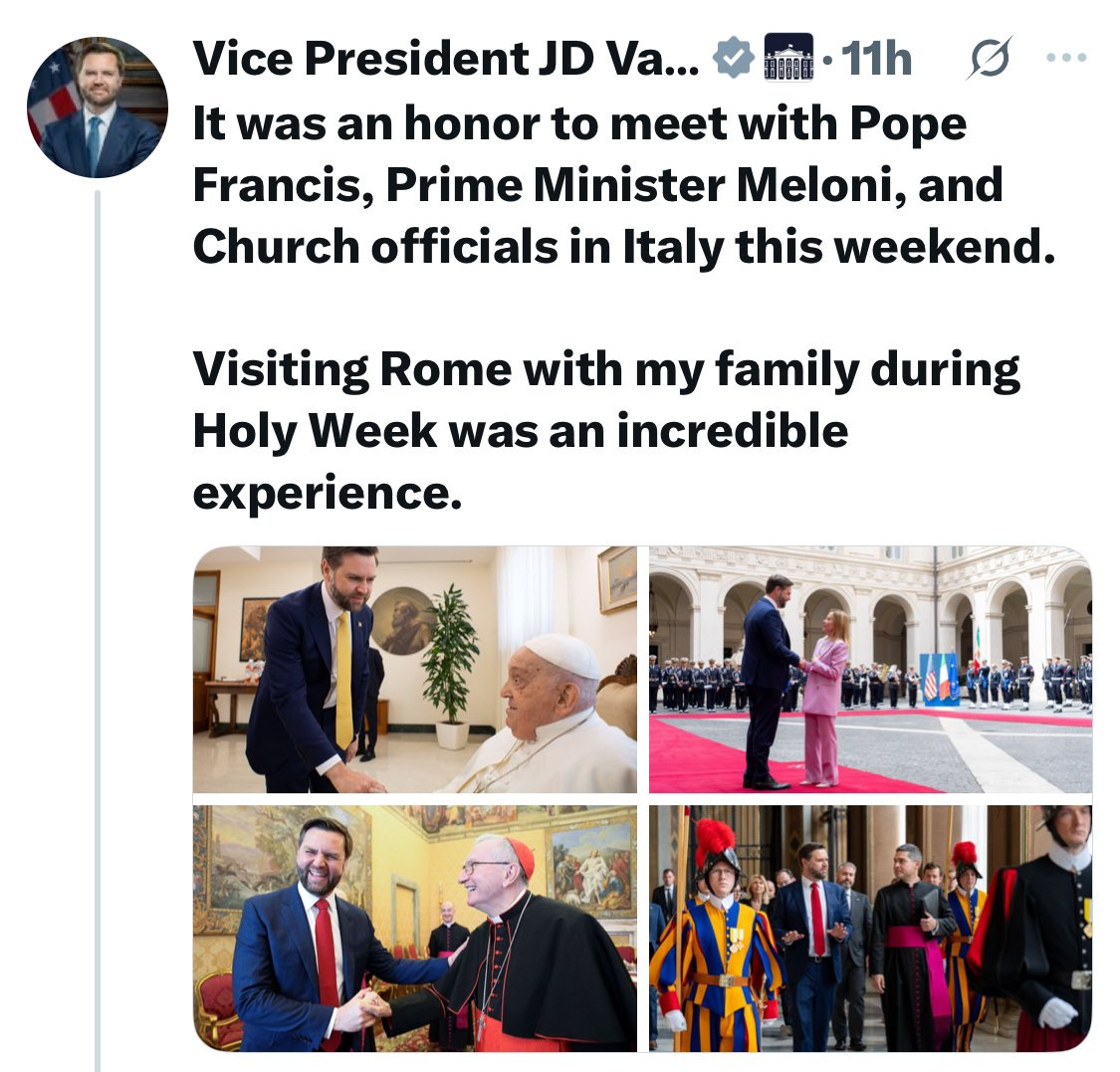 … and JD Vance’s evil vibes/energy were being visited upon the pope in his last moments, likely having the same effect on the pope’s spirit as Vance’s hands had on the Ohio State football championship trophy …
