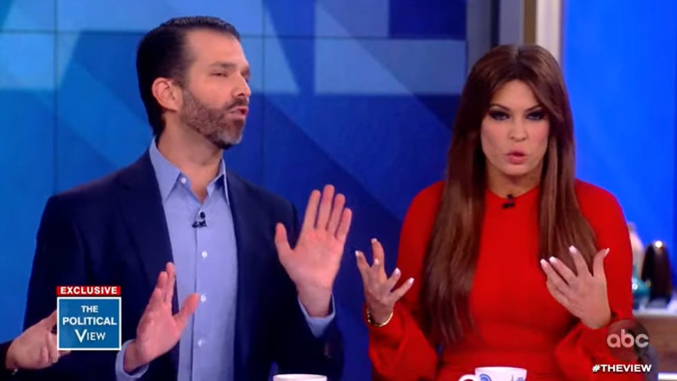 We had the ladies of @TheView absolutely TRIGGERED! Hah! Proud to stand with @DonaldJTrumpJr, @realDonaldTrump, an… https: //t.co/Jz4PbZgZFp