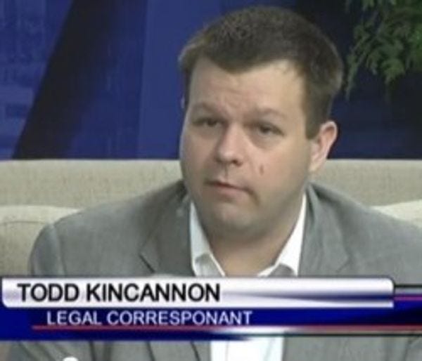 We are speaking of our old friend and former executive director of the South Carolina GOP Todd Kincannon. This weekend Todd took a break from his usual daily activities, like wishing for the death of former soldiers whose political positions differ from his own or positing that a murdered teenager would have become a pole-smoking crack whore if he had not been tried, convicted, and executed on the spot for the crime of carrying a bottle of Snapple in the wrong neighborhood, in order to enter into holy matrimony with what appears to be a real, live human female.